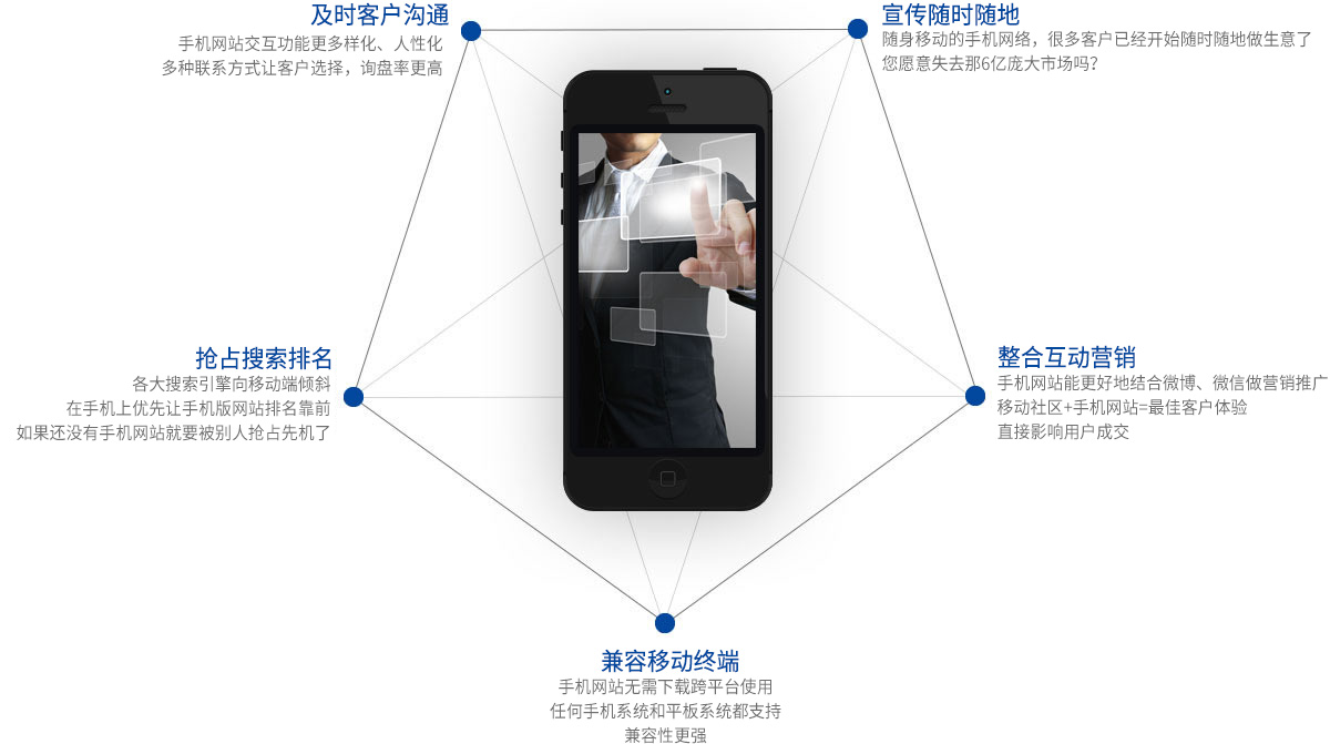 手機的屏幕小,傳統(tǒng)網(wǎng)站在手機上瀏覽很不方便,這時候就需要在手機上設(shè)計專門適合手機端的網(wǎng)站。第二,全網(wǎng)營銷時代